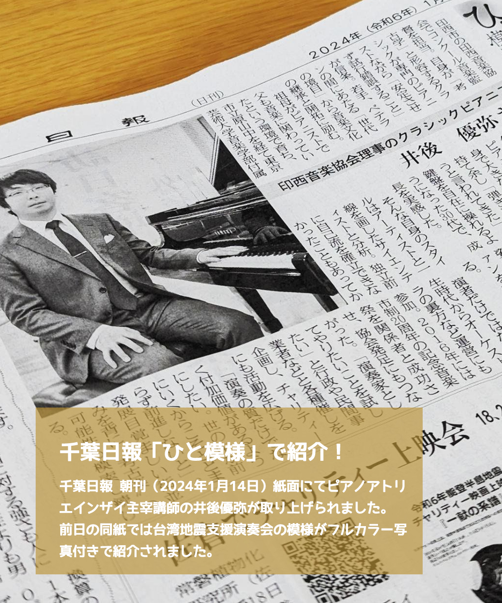 英会話、プール、塾とたくさんの習い事に通うことが珍しくない昨今、分かりやすく面白さが伴わなければ何事も続けていくことは大変です。ピアノアトリエでは東京藝術大学卒・コンサートピアニストとしての経験を活かして、かけた時間の分だけ確実に上達が実感できると好評をいただいております。初めてピアノに触れる子どもはもちろん、年配の方、合唱伴奏、コンクール対策まで幅広く、二人三脚で一緒にステップアップしましょう。